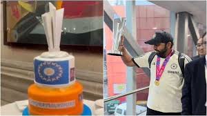 वतन लौटे चैंपियंस का जोरदार वेलकम, टीम इंडिया की जर्सी के रंग का केक, चॉकलेट की ट्रॉफी